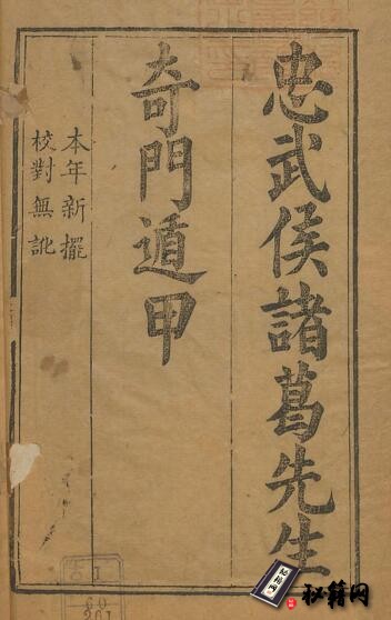 书名:《忠武候诸葛武候奇门遁甲》刻印方式:刻本